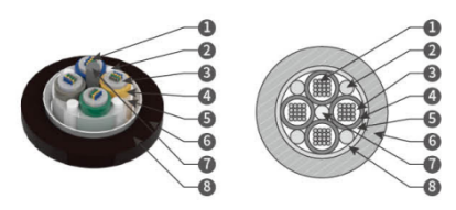 Is é struchtúr cábla optúil GYDTA ná snáithíní optúla 4, 6, 8, agus 12-lárnach a chur isteach i bhfeadán scaoilte déanta as ábhar ard modulus, agus an feadán scaoilte a líonadh le comhdhúile uiscedhíonach. Is croí treisithe miotail é lár an chroí cábla. I gcás roinnt croíthe cábla le líon áirithe croíleacáin, is gá ciseal breise poileitiléin (PE) a easbhrú lasmuigh den chroí treisithe miotail. Tá an feadán scaoilte agus an rópa líonadh casta timpeall an chroílár treisithe lárnach chun croí cábla dhlúth agus ciorclach a dhéanamh. Líontar na bearnaí laistigh den chroí cábla le líontóirí uiscedhíonta. Tá an téip alúmanam brataithe (APL) fillte go fadaimseartha, agus ansin tá sheath poileitiléin easbhrúite chun an cábla a fhoirmiú.